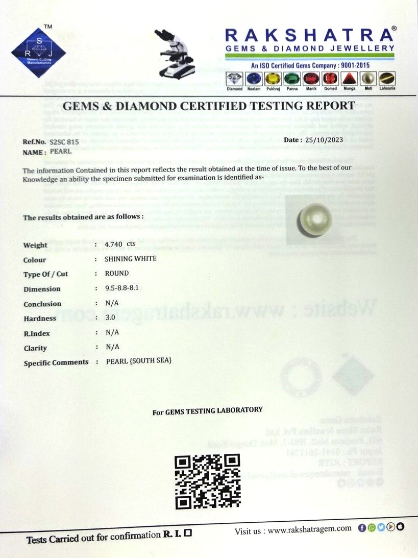 | SPECIFIC COMMENTS: | PEARL { SOUTH SEA } |