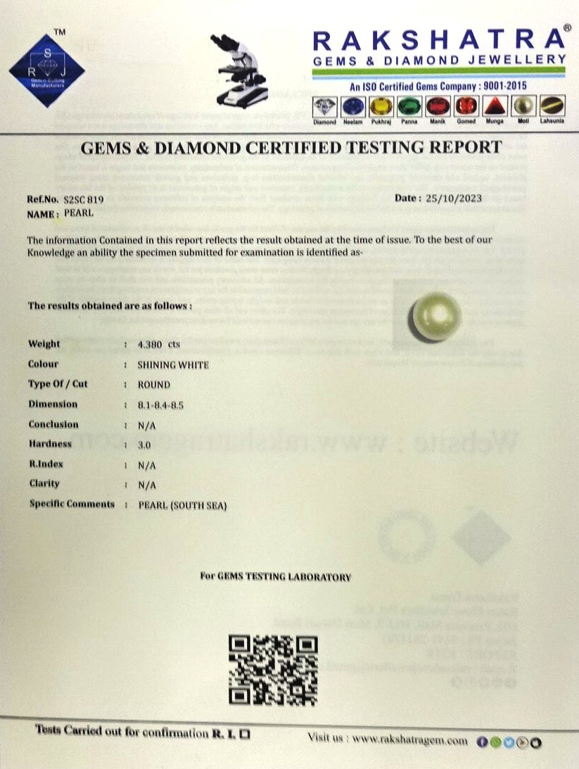 | SPECIFIC COMMENTS: | PEARL { SOUTH SEA } |