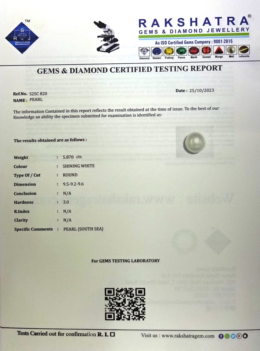 | SPECIFIC COMMENTS: | PEARL { SOUTH SEA } |