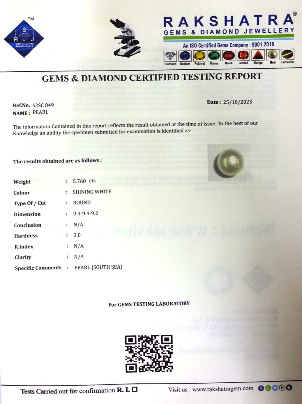 | SPECIFIC COMMENTS: | PEARL { SOUTH SEA } |