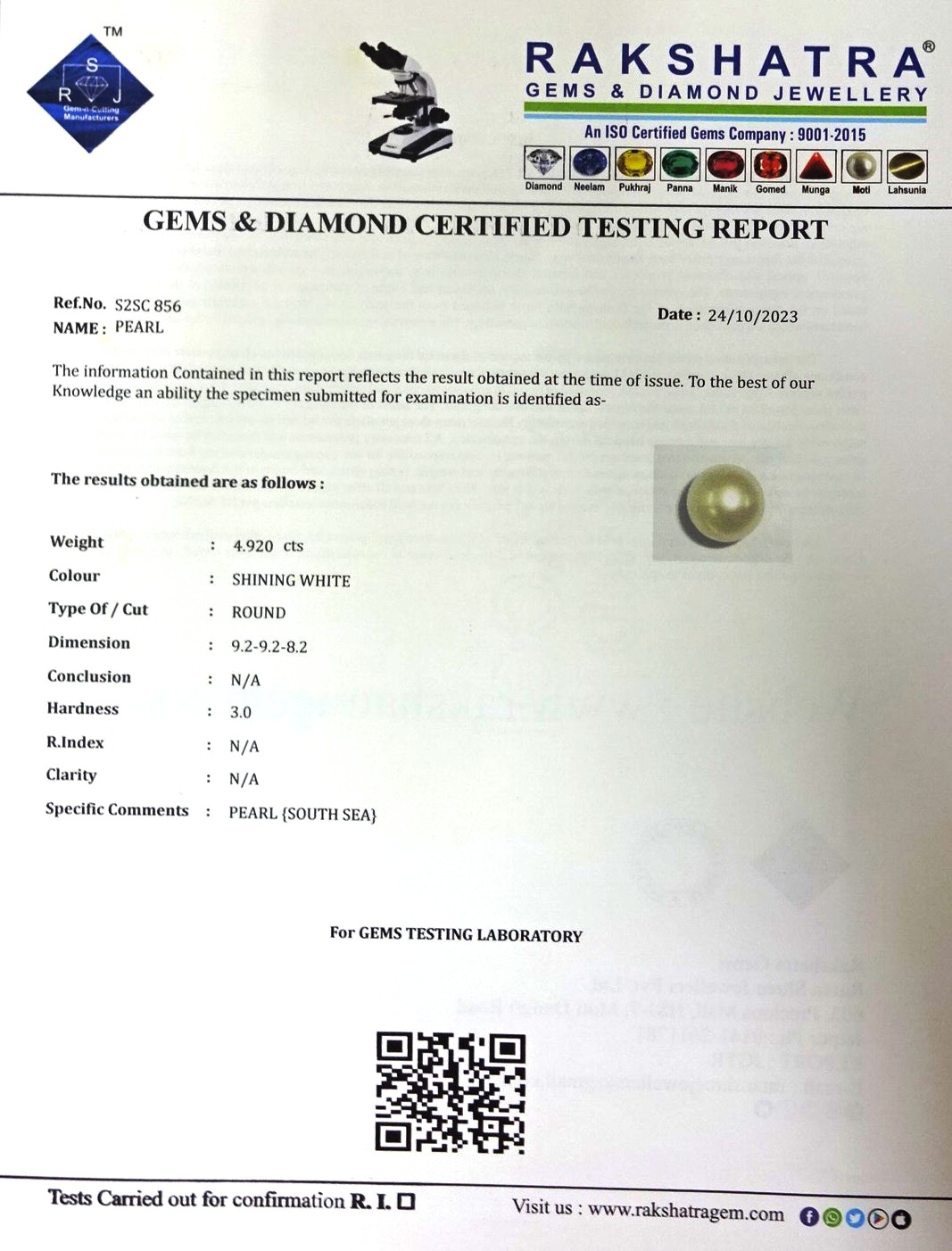 | SPECIFIC COMMENTS: | PEARL { SOUTH SEA } |