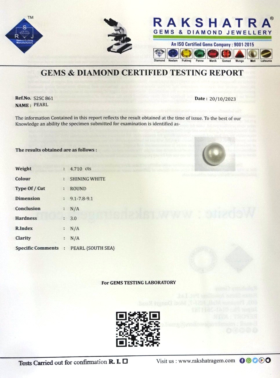 | SPECIFIC COMMENTS: | PEARL {SOUTH SEA} |