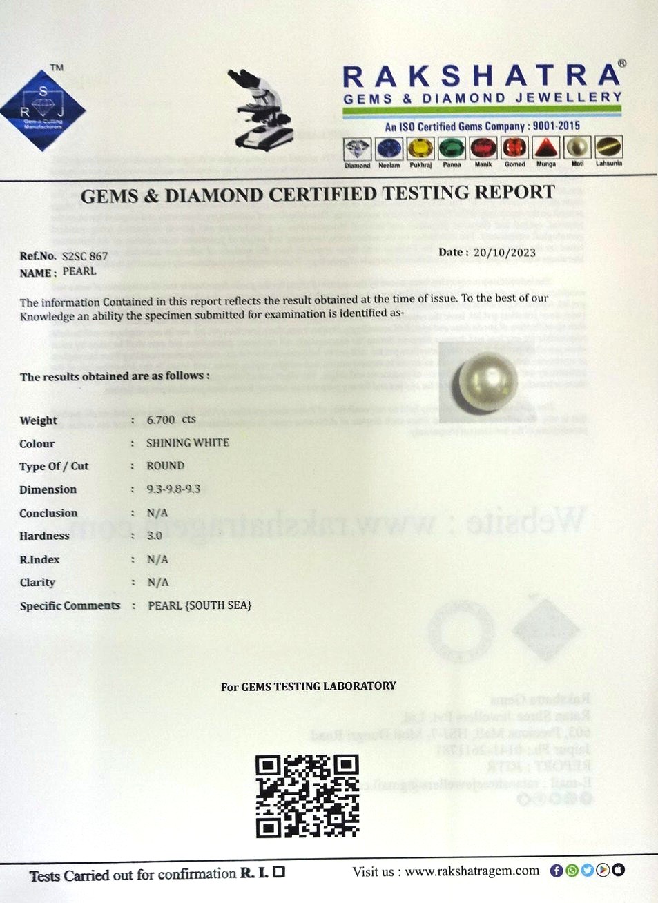 | WEIGHT: | 6.70 CTS |
