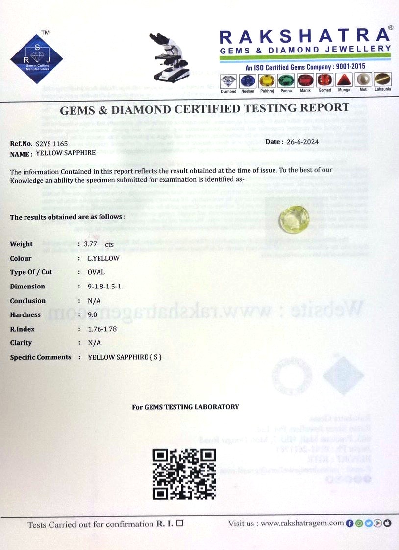 | SPECIFIC COMMENTS: | YELLOW SAPPHIRE { S } |