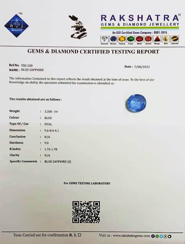 | SPECIFIC COMMENTS: | BLUE SAPPHIRE {S} |