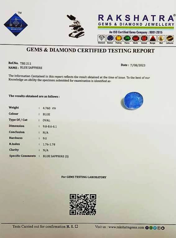 | SPECIFIC COMMENTS: | BLUE SAPPHIRE {S} |