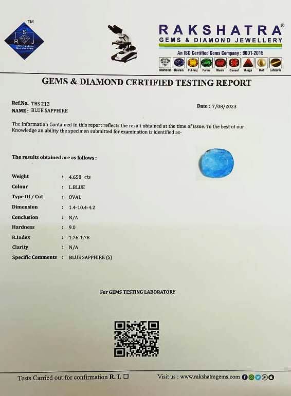 | SPECIFIC COMMENTS: | BLUE SAPPHIRE {S} |