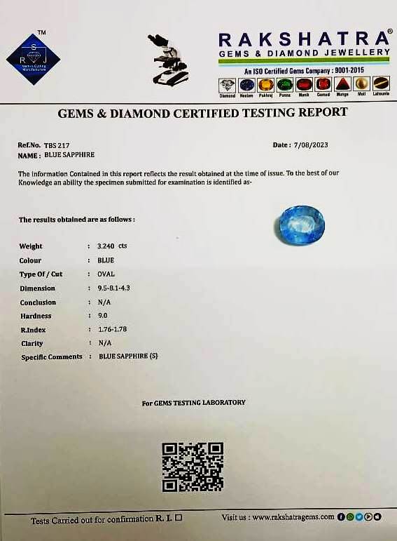 | SPECIFIC COMMENTS: | BLUE SAPPHIRE {S} |