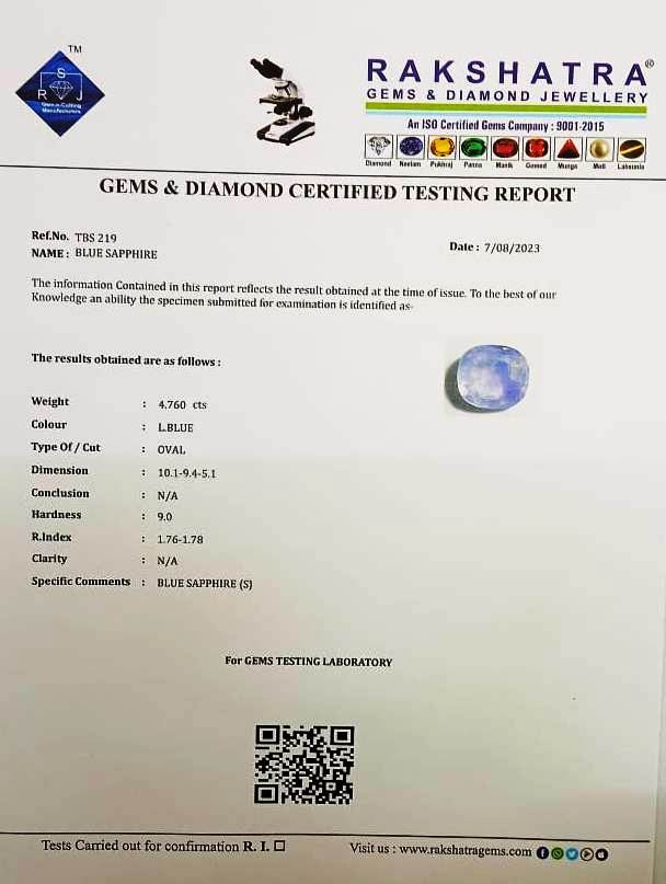 | SPECIFIC COMMENTS: | BLUE SAPPHIRE {S} |
