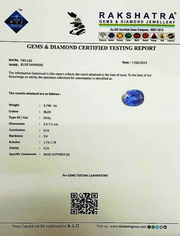 | SPECIFIC COMMENTS: | BLUE SAPPHIRE {S} |
