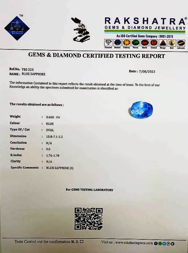 | SPECIFIC COMMENTS: | BLUE SAPPHIRE {S} |