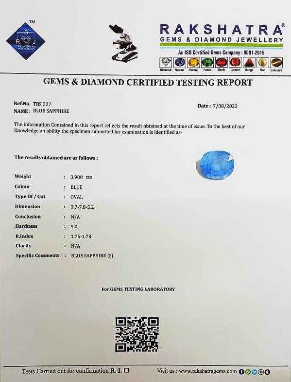 | SPECIFIC COMMENTS: | BLUE SAPPHIRE {S} |