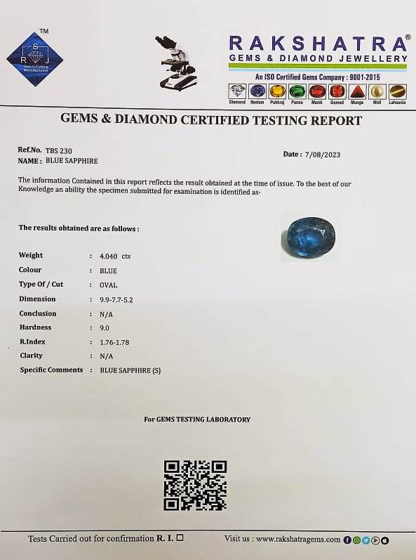 | SPECIFIC COMMENTS: | BLUE SAPPHIRE {S} |