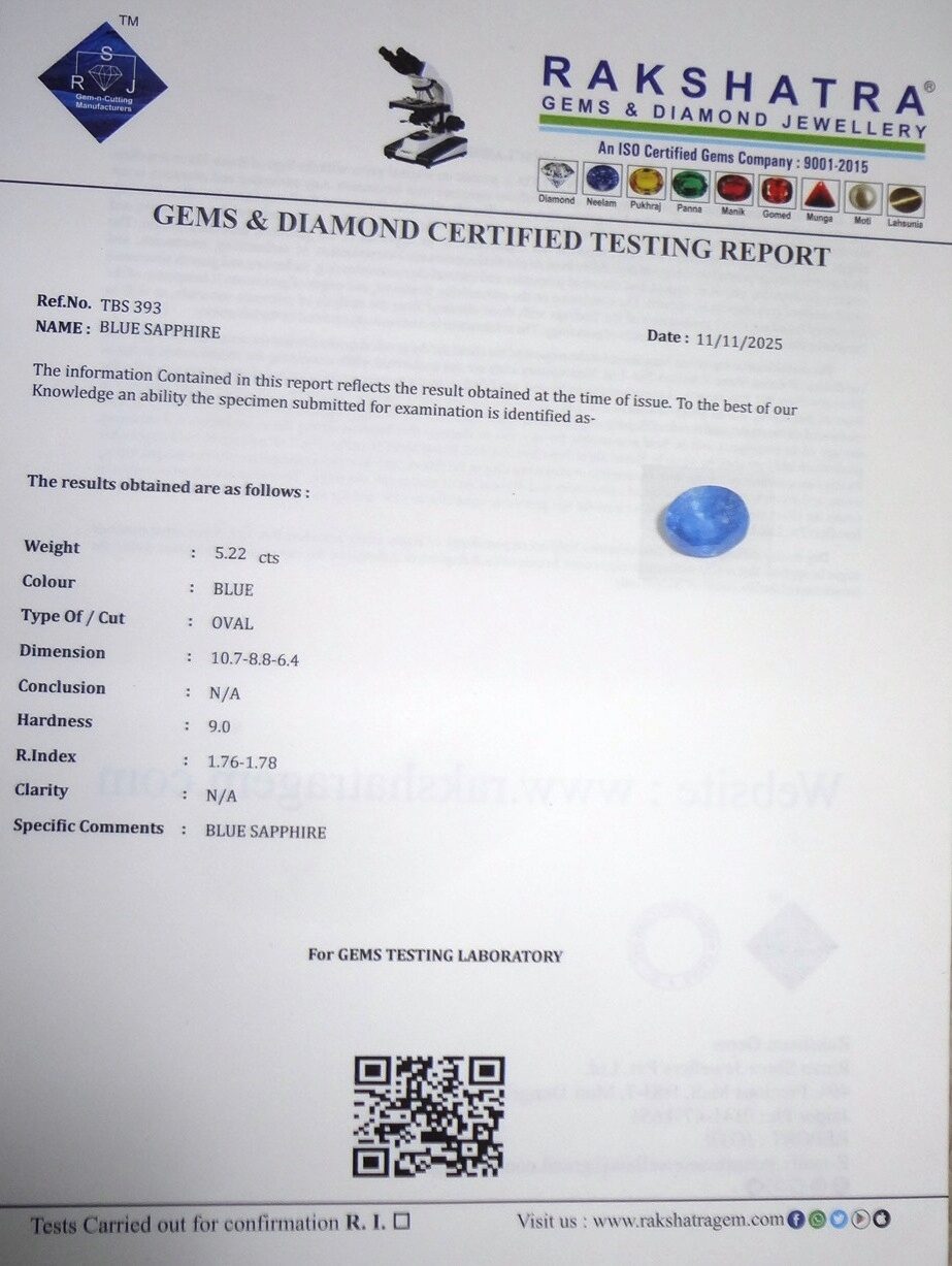 | SPECIFIC COMMENTS: | BLUE SAPPHIRE {S} |