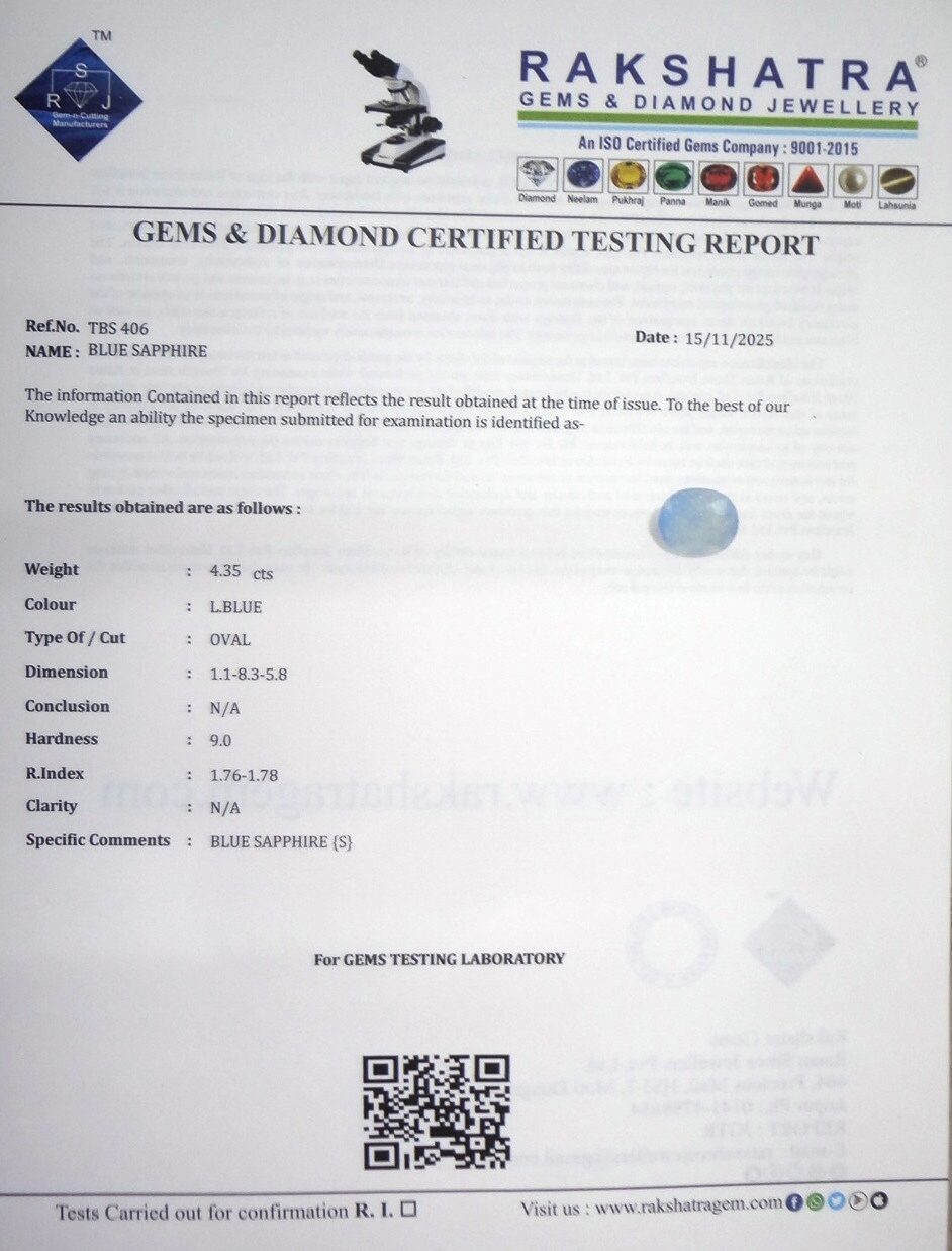 | SPECIFIC COMMENTS: | BLUE SAPPHIRE { S } |