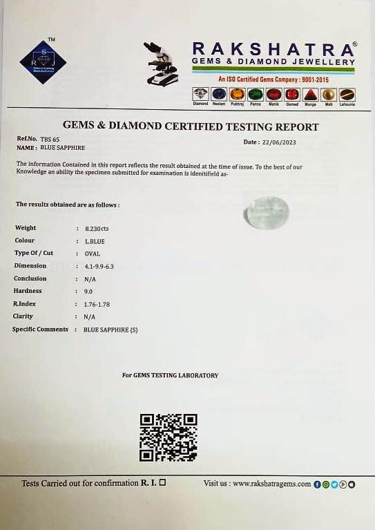 | SPECIFIC COMMENTS: | BLUE SAPPHIRE { S } |