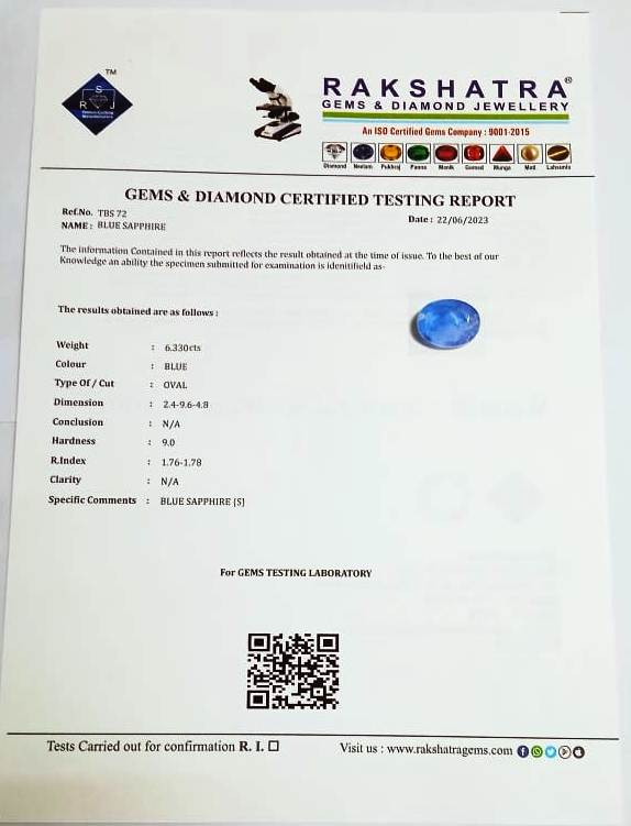| SPECIFIC COMMENTS: | BLUE SAPPHIRE { S } |