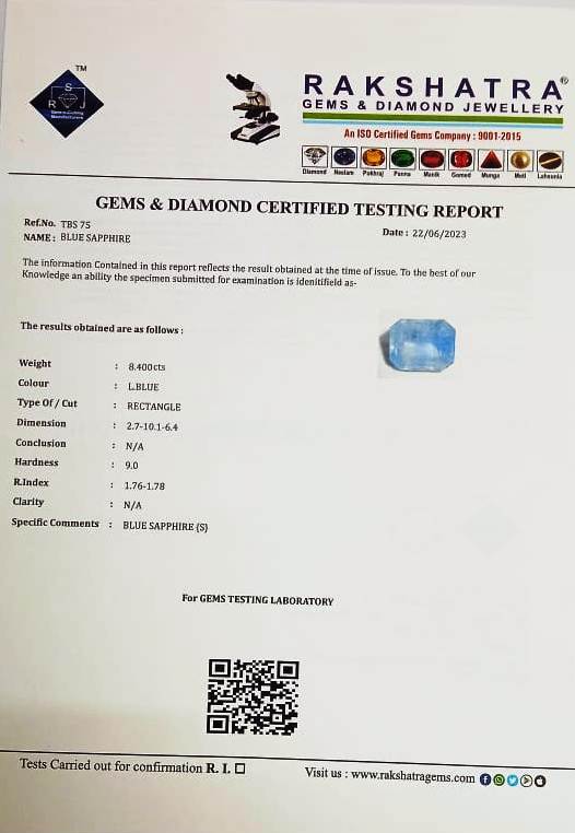 | SPECIFIC COMMENTS: | BLUE SAPPHIRE { S } |