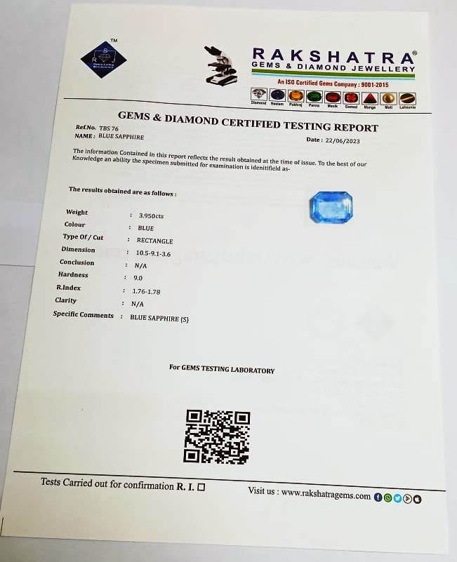 | SPECIFIC COMMENTS: | BLUE SAPPHIRE { S } |