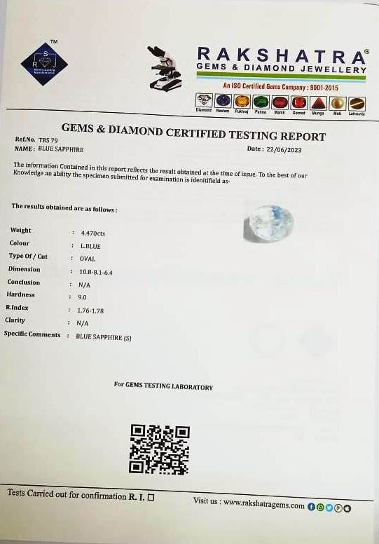 | SPECIFIC COMMENTS: | BLUE SAPPHIRE { S } |