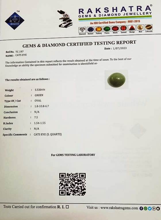 | SPECIFIC COMMENTS: | CATS EYE { S . QUARTZ } |