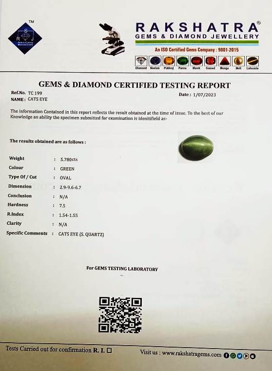 | SPECIFIC COMMENTS: | CATS EYE { S . QUARTZ } |