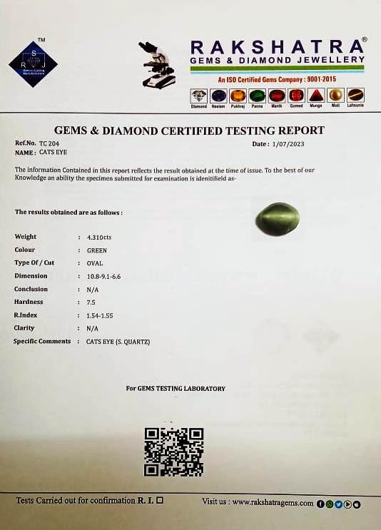 | SPECIFIC COMMENTS: | CATS EYE { S . QUARTZ } |