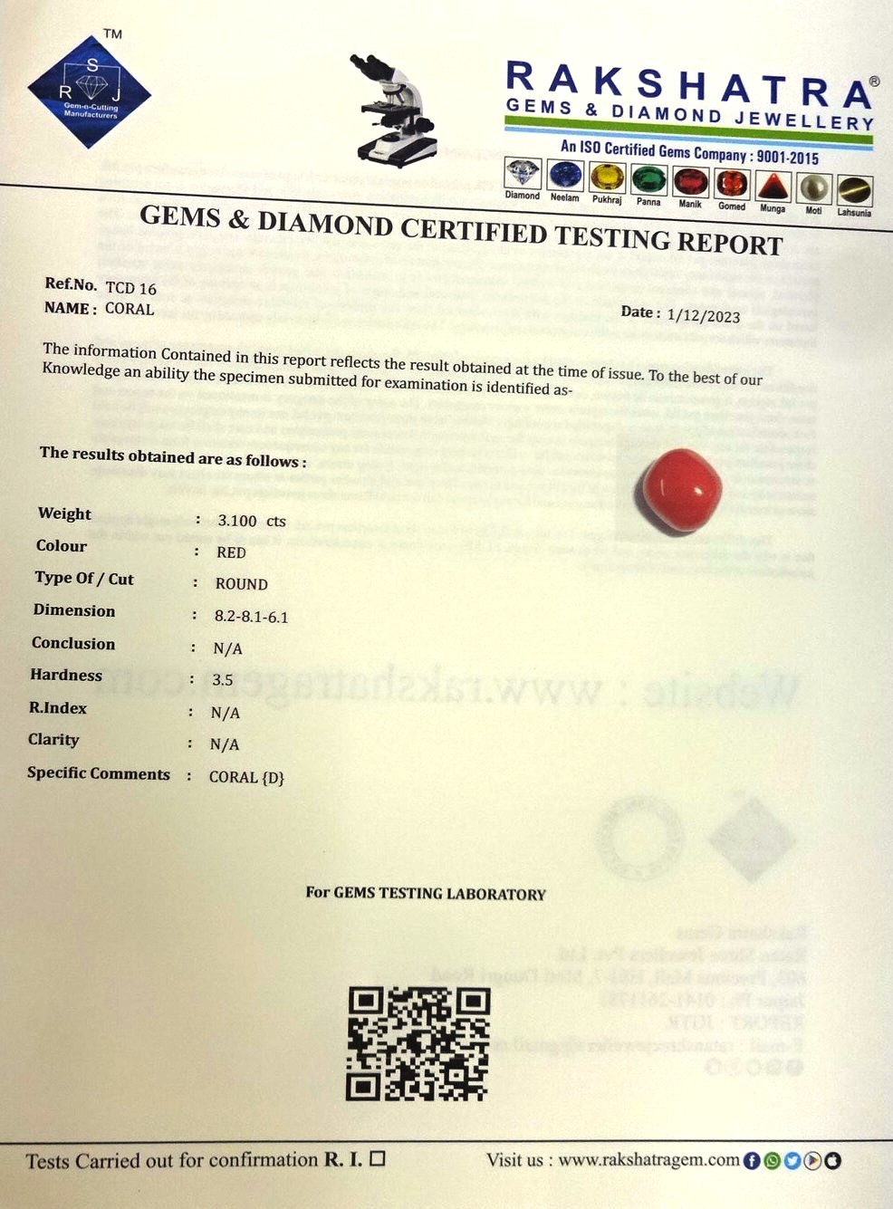 | WEIGHT: | 3.10 CTS |
