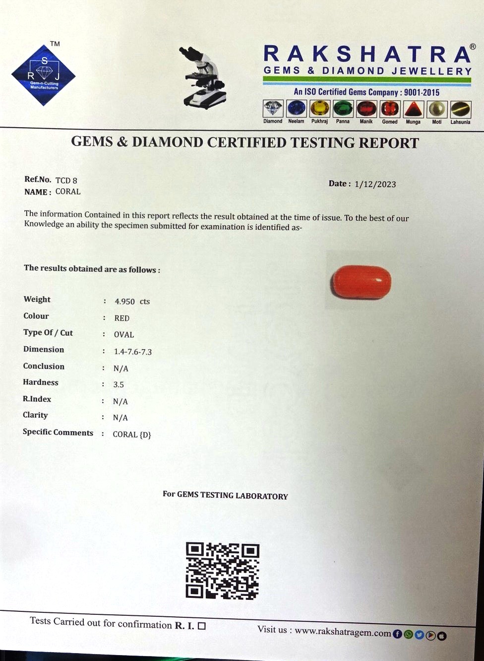 | WEIGHT: | 4.95 CTS |