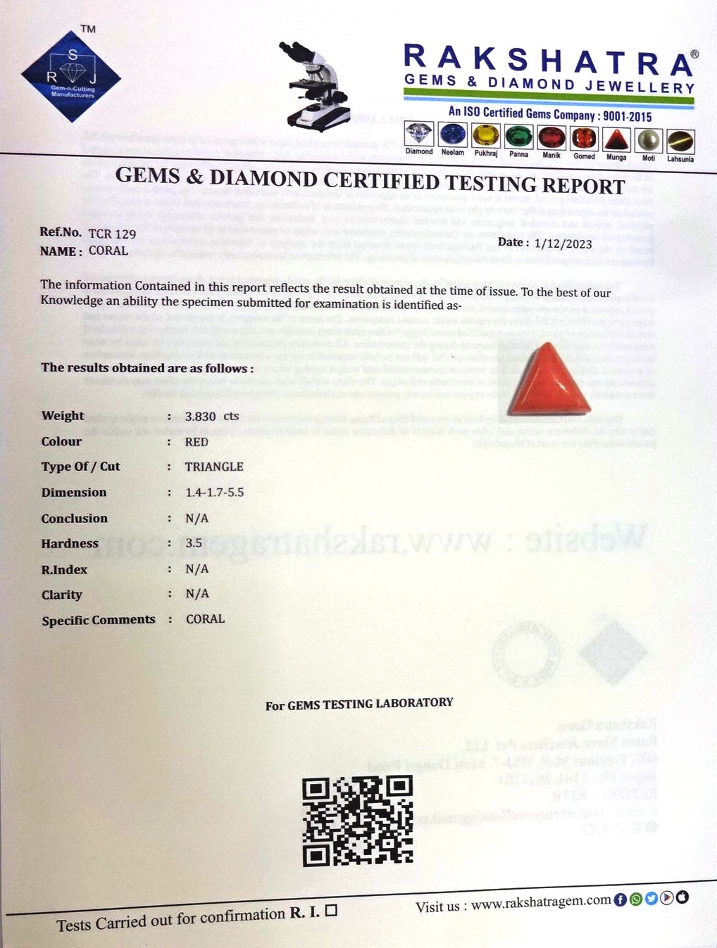 | WEIGHT: | 3.83 CTS |