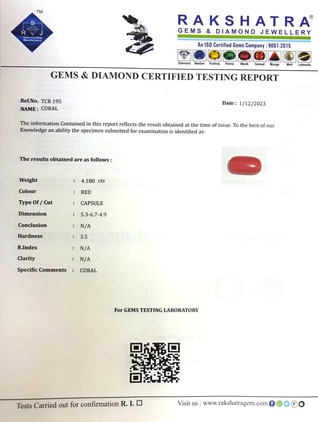 | WEIGHT: | 4.18 CTS |
