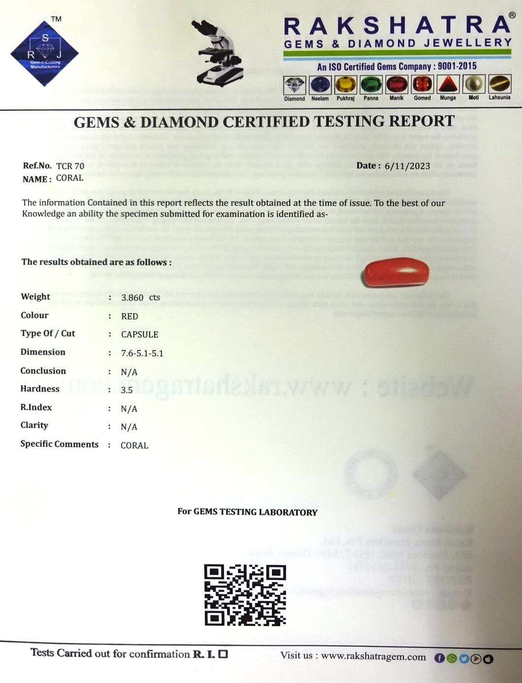 | WEIGHT: | 3.86 CTS |