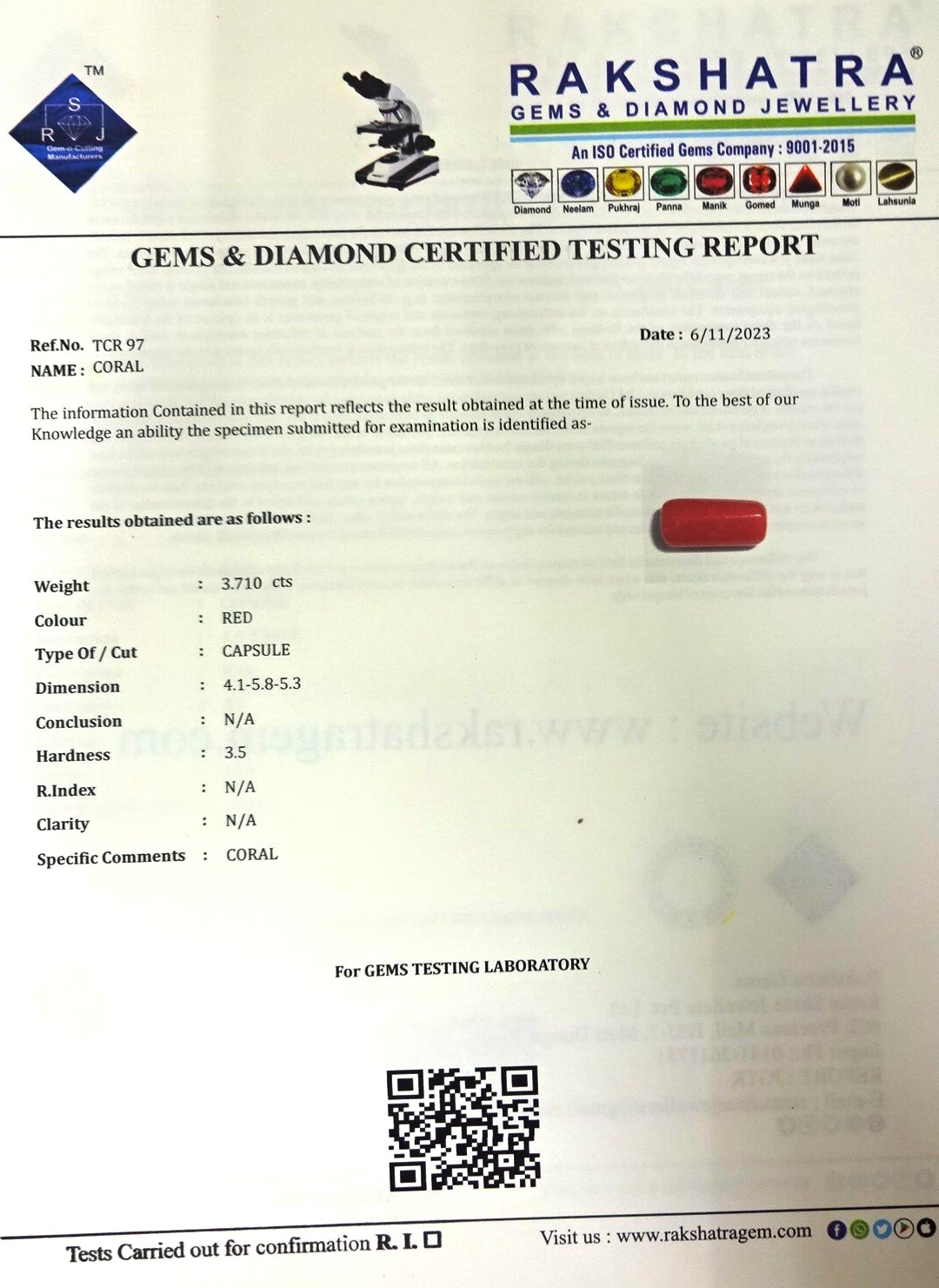 | WEIGHT: | 3.71 CTS |