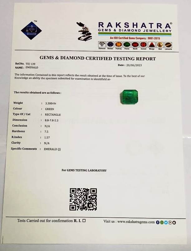 | SPECIFIC COMMENTS: | EMERALD {J} |