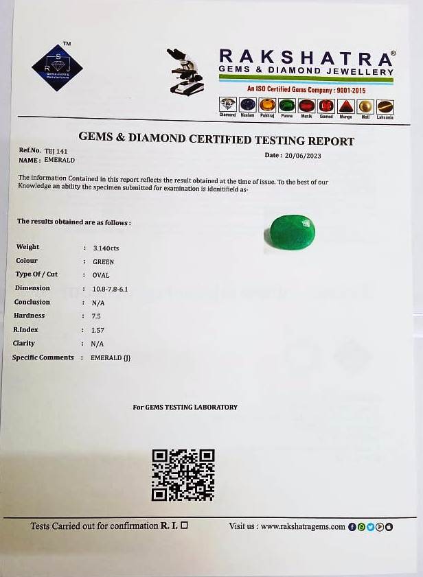 | SPECIFIC COMMENTS: | EMERALD {J} |