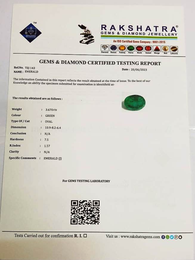 | SPECIFIC COMMENTS: | EMERALD { J } |