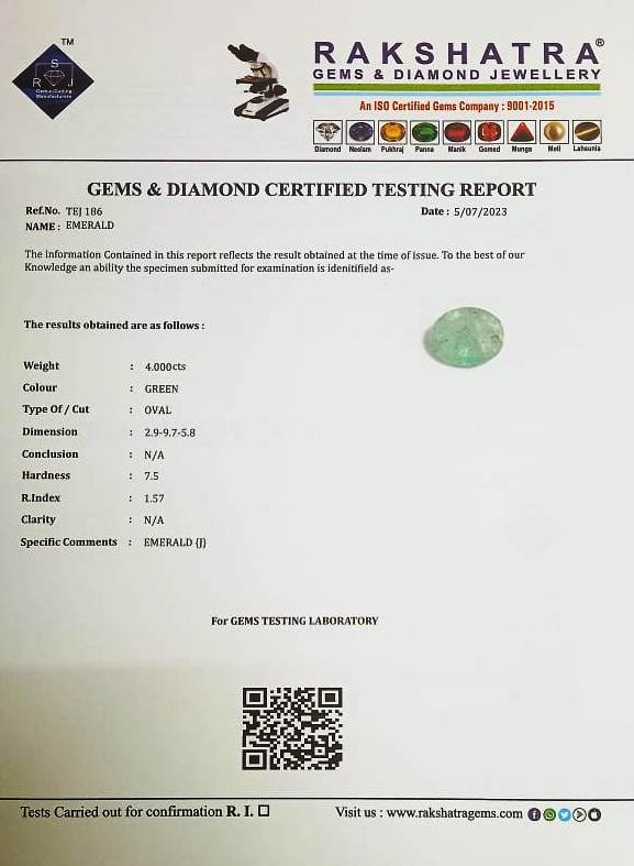 | SPECIFIC COMMENTS: | EMERALD { J } |