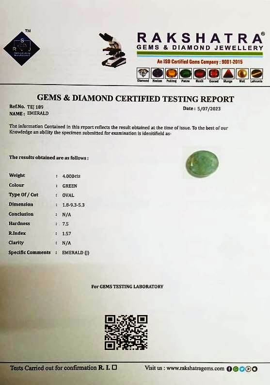 | SPECIFIC COMMENTS: | EMERALD { J } |