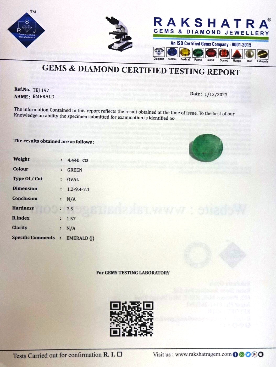 | WEIGHT: | 4.44 CTS |