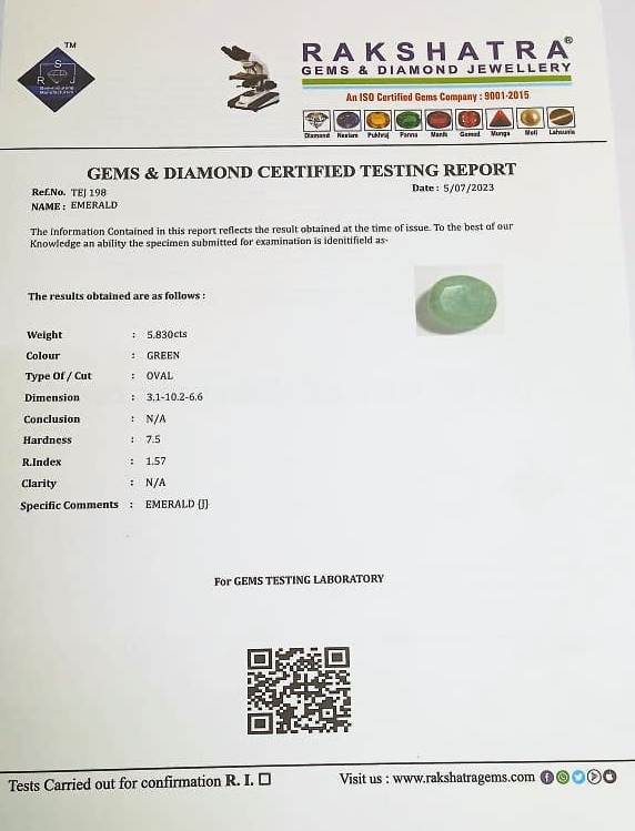 | SPECIFIC COMMENTS: | EMERALD { J } |