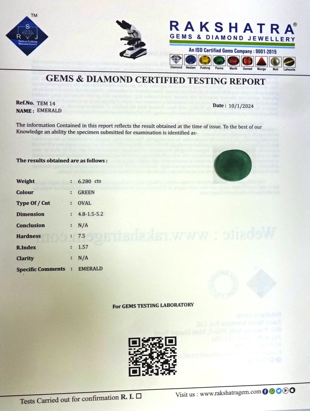 | WEIGHT: | 6.28 CTS |
