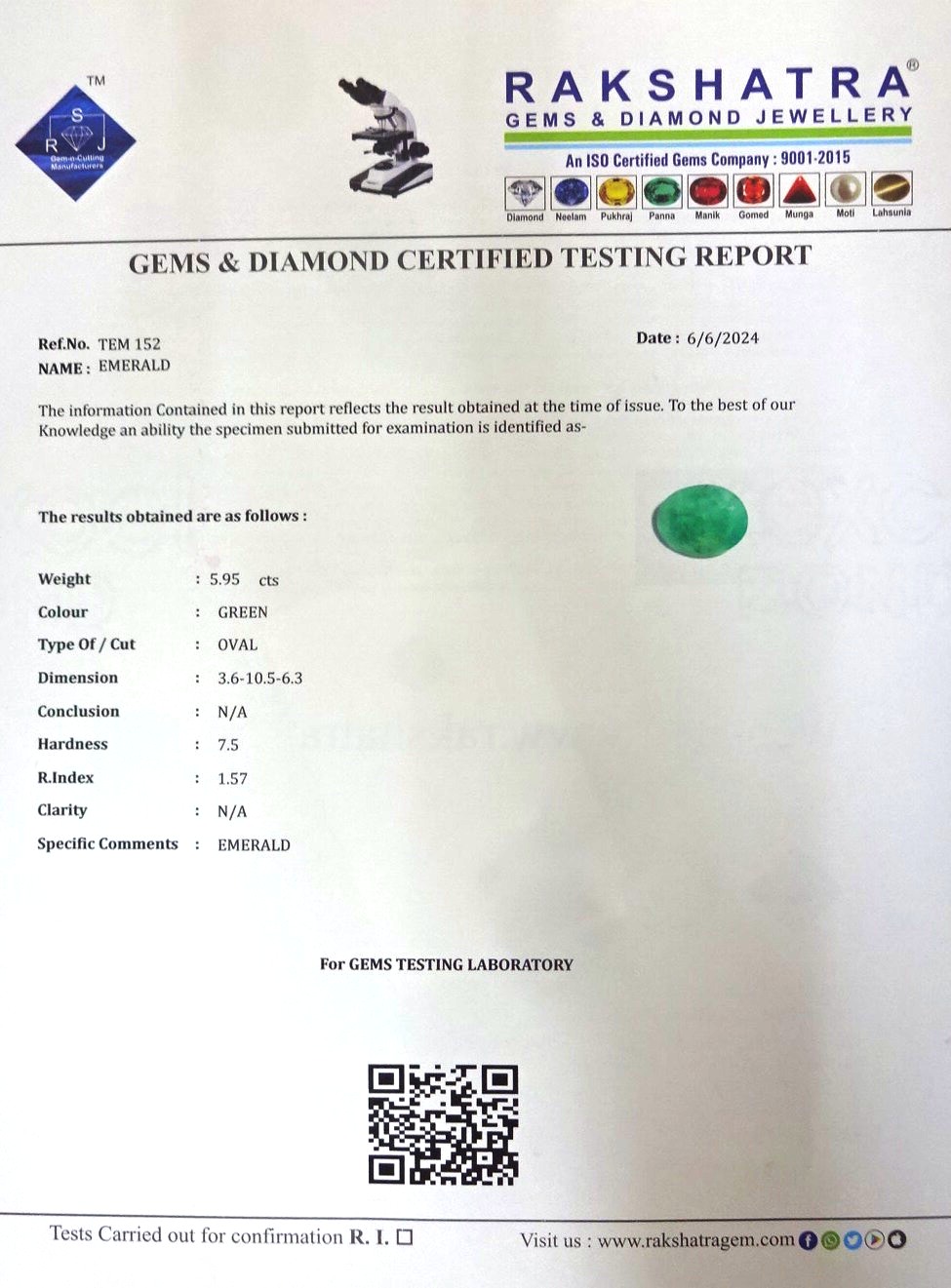 | WEIGHT: | 5.95 CTS |