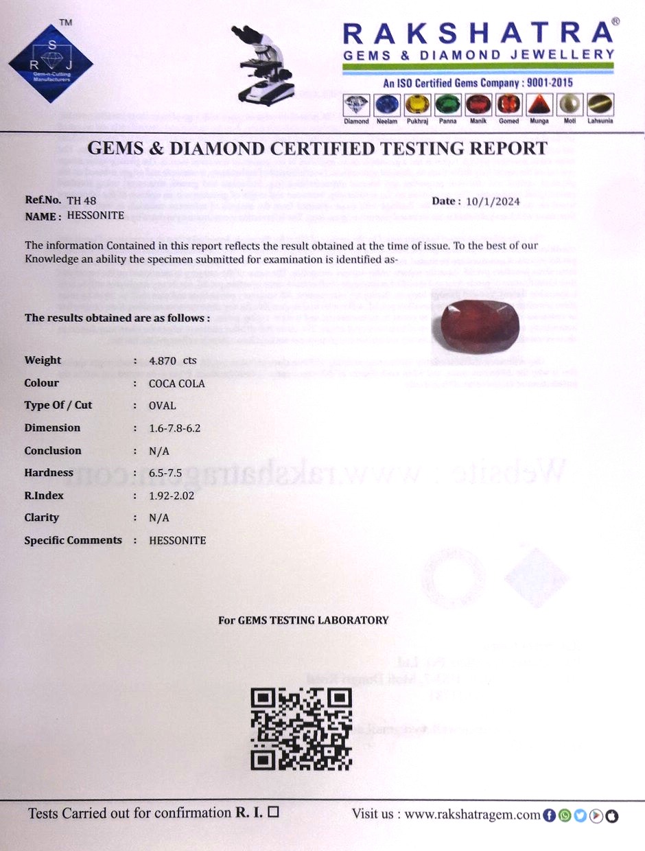 | SPECIFIC COMMENTS: | HESSONITE |