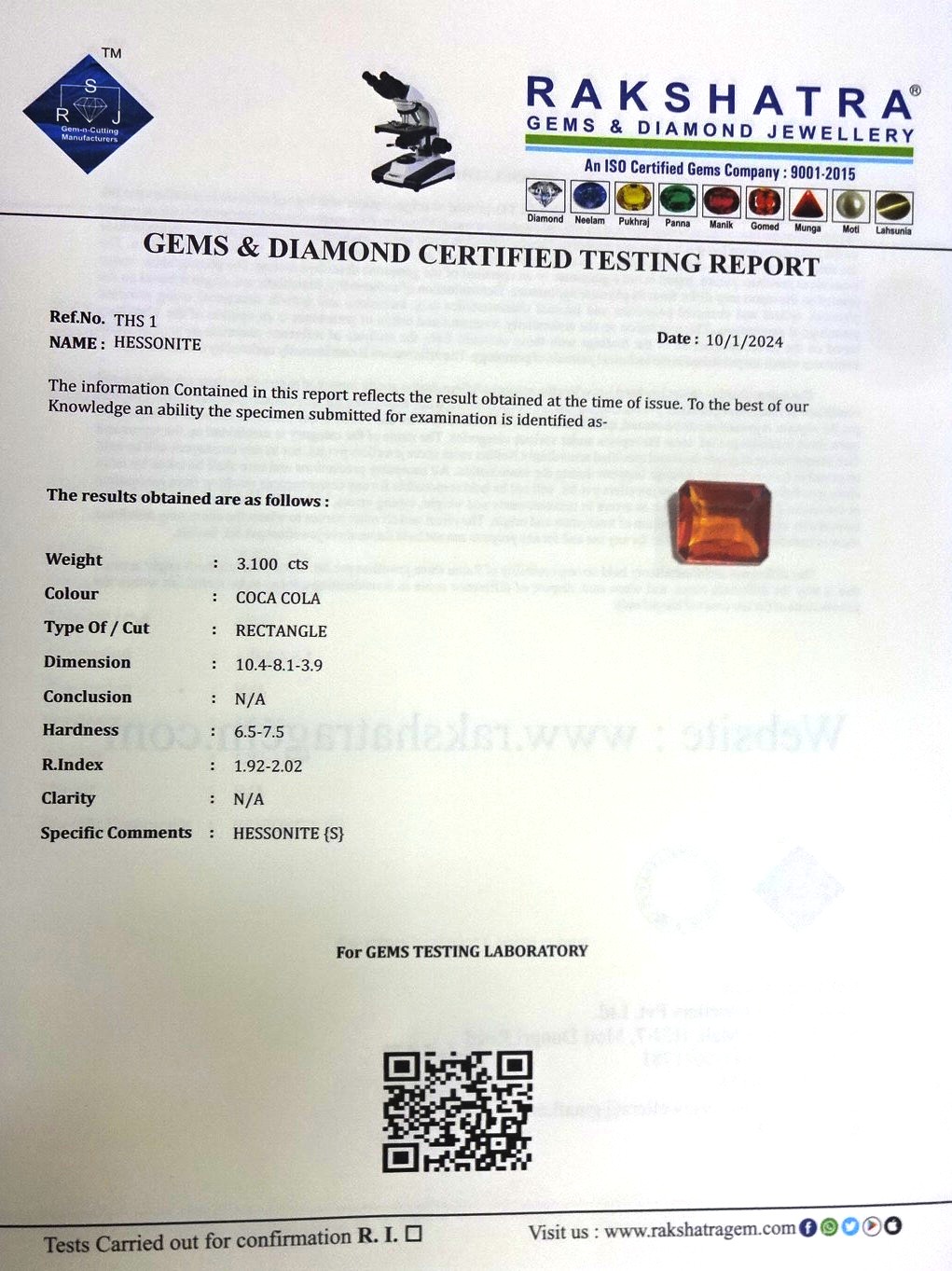 | SPECIFIC COMMENTS: | HESSONITE {S} |