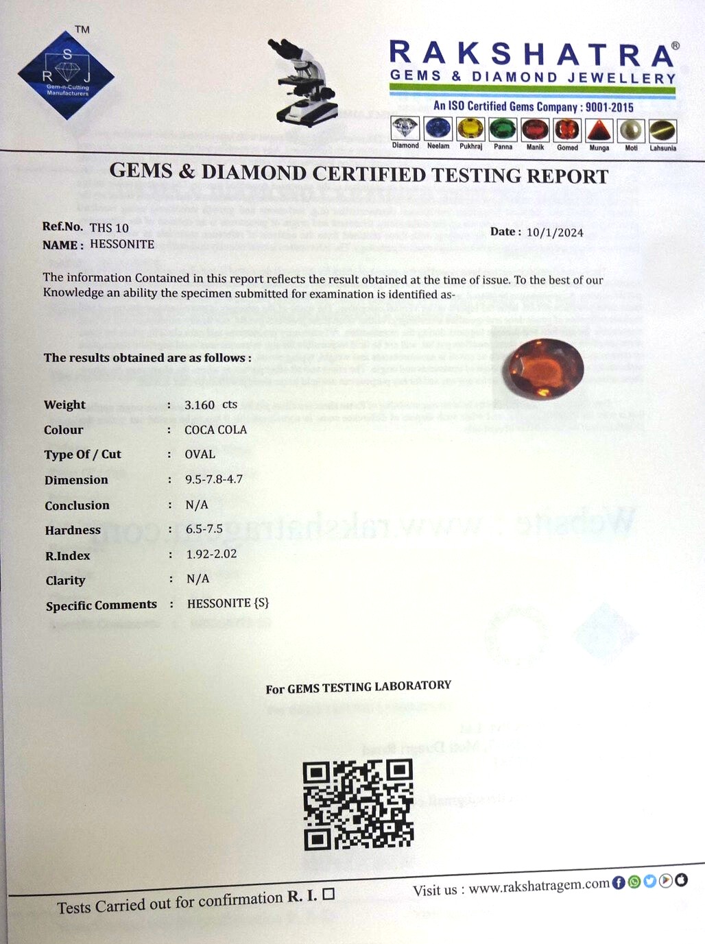 | SPECIFIC COMMENTS: | HESSONITE {S} |
