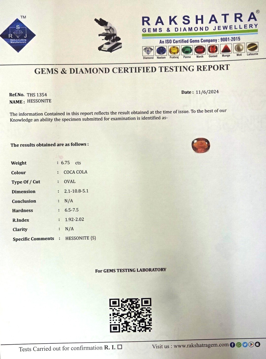 | SPECIFIC COMMENTS: | HESSONITE {S} |