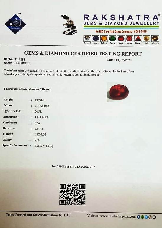 | SPECIFIC COMMENTS: | HESSONITE { S } |