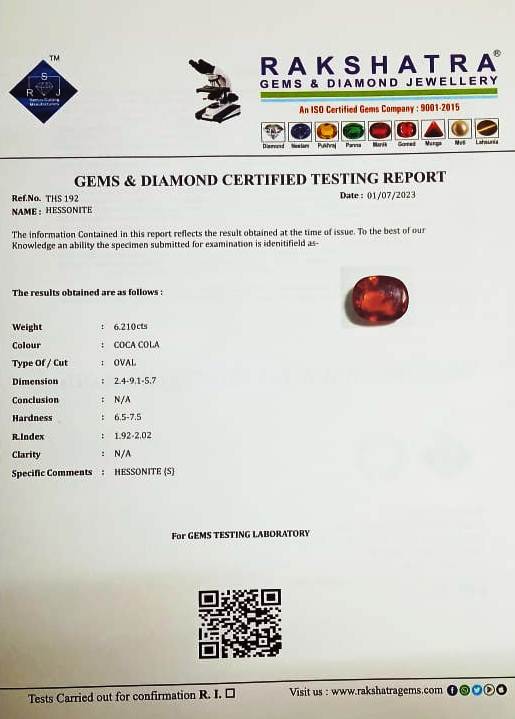 | SPECIFIC COMMENTS: | HESSONITE { S } |