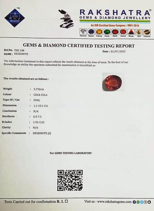 | SPECIFIC COMMENTS: | HESSONITE { S } |