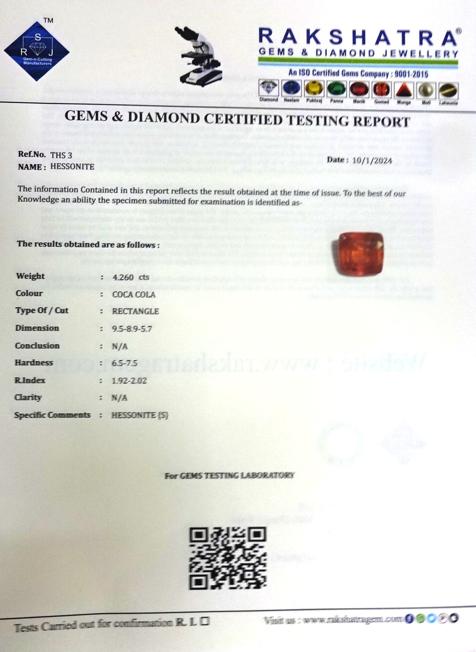 | SPECIFIC COMMENTS: | HESSONITE {S} |